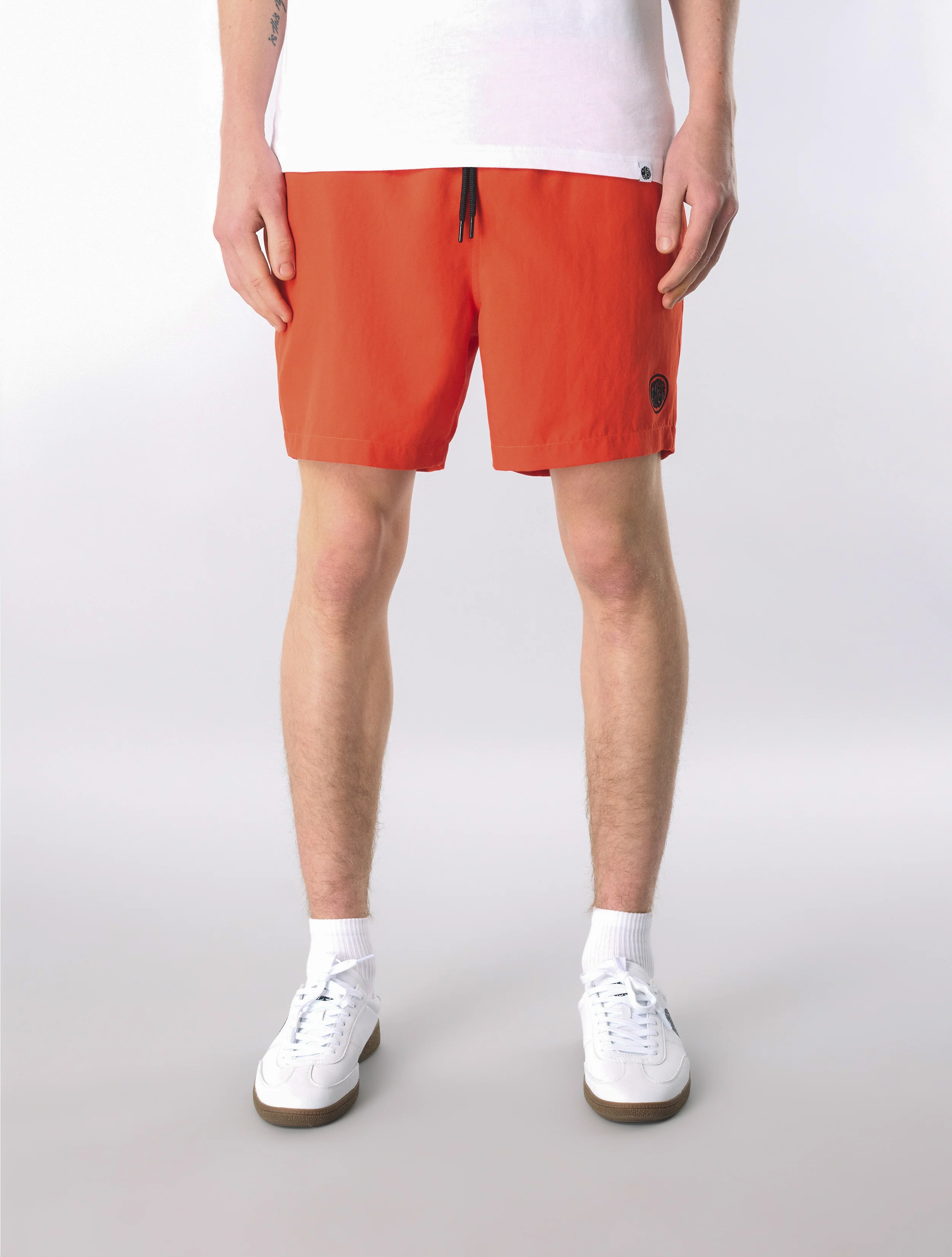 — Embroidered logo at left thigh